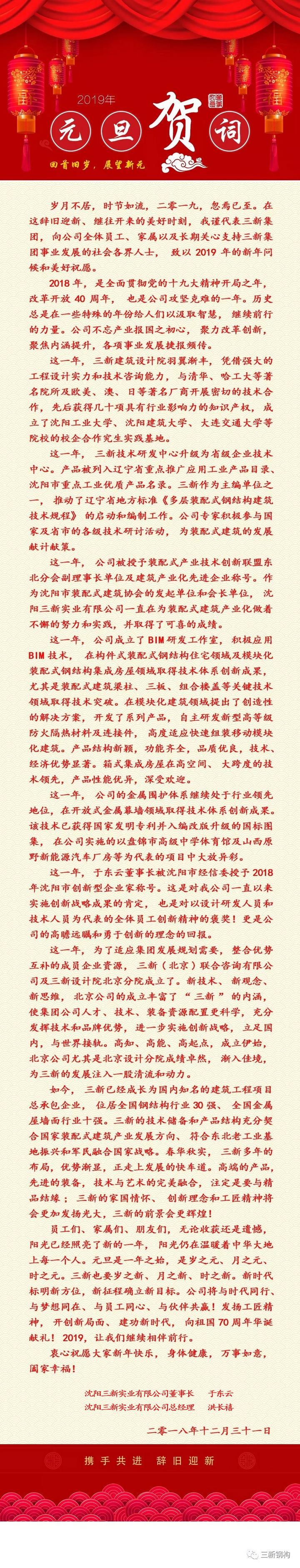 新年賀詞:攜手共進,辭舊迎新