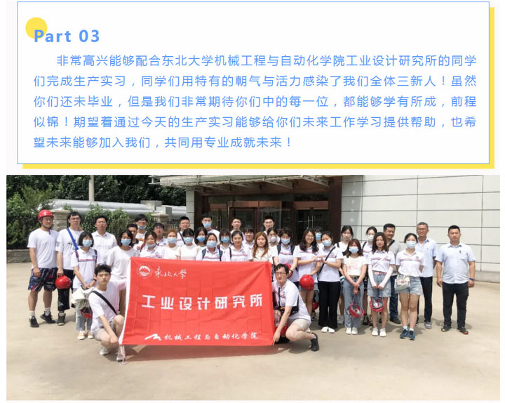 歡迎東北大學(xué)機(jī)械工程與自動化學(xué)院工業(yè)設(shè)計(jì)研究所同學(xué)來我司生產(chǎn)實(shí)習(xí)