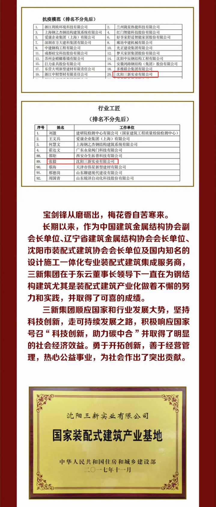 產(chǎn)業(yè)報(bào)國(guó) 不辱使命——“中國(guó)建筑金屬結(jié)構(gòu)協(xié)會(huì)”四十周年華誕,三新集團(tuán)榮獲多項(xiàng)殊榮