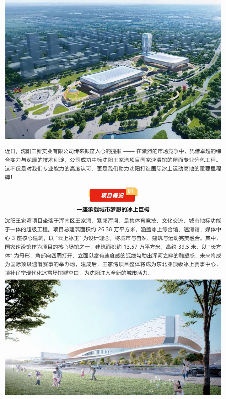 沈陽三新實(shí)業(yè)成功中標(biāo)王家灣冰上運(yùn)動(dòng)中心速滑館重點(diǎn)屋面工程,助力第十五屆全國冬季運(yùn)動(dòng)會(huì)